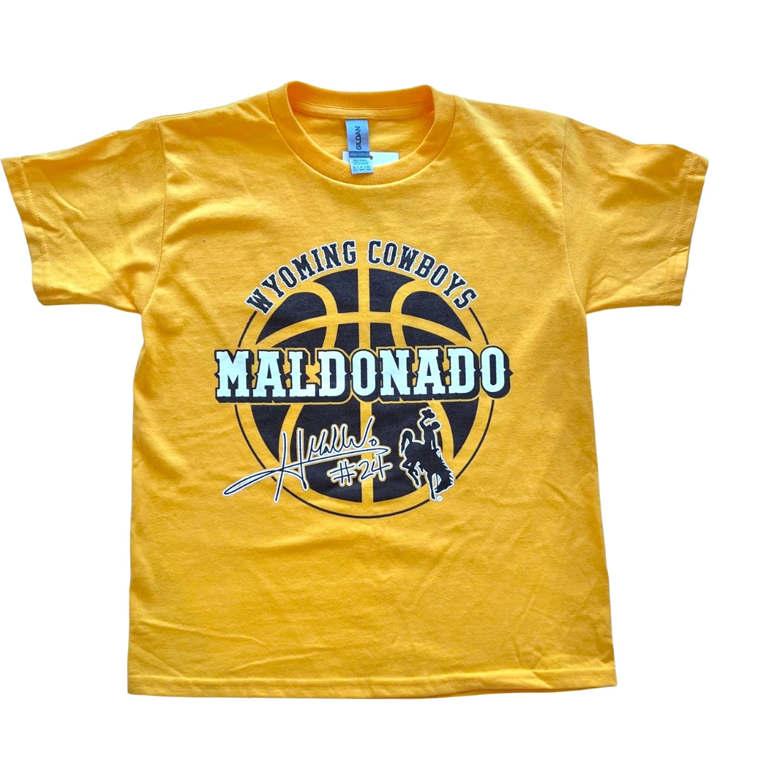 Wyoming Cowboys Hunter Maldonado #24 Youth S/S Tee – Gold