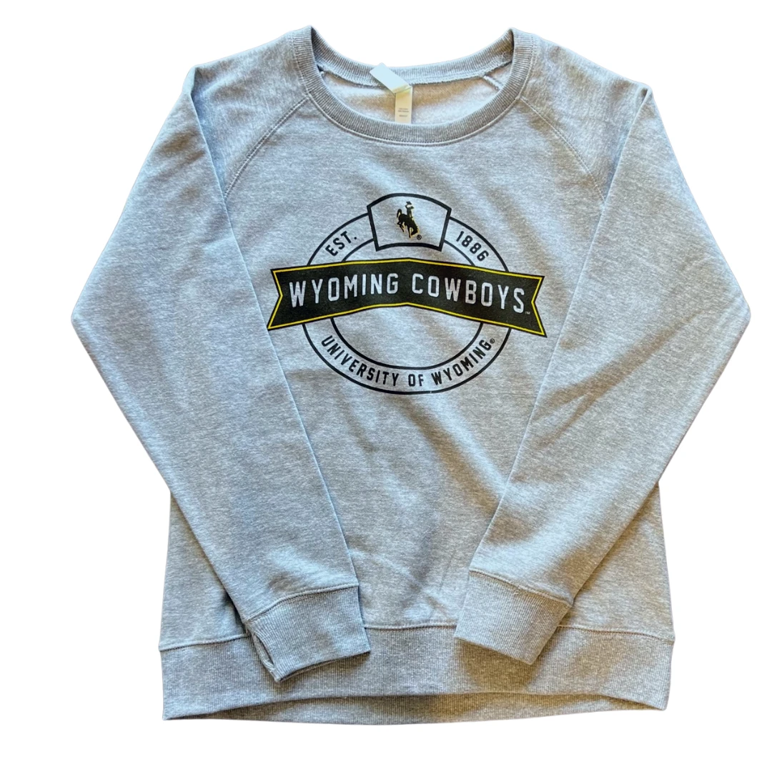 Wyoming Cowboys Women’s Est. Cozy Crew – Heather Grey